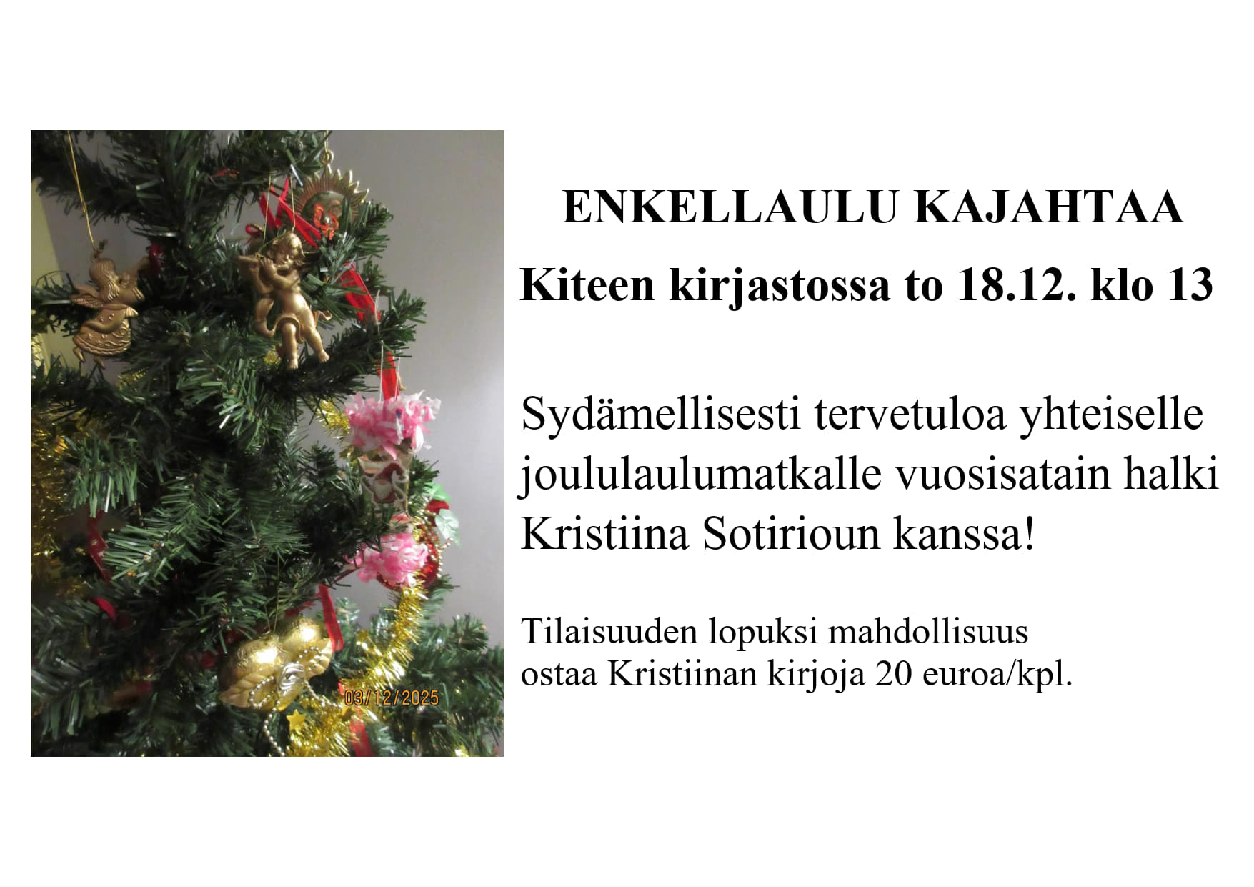 Sydämellisesti tervetuloa yhteiselle joululaulumatkalle vuosisatain halki Kristiina Sotirioun kanssa!