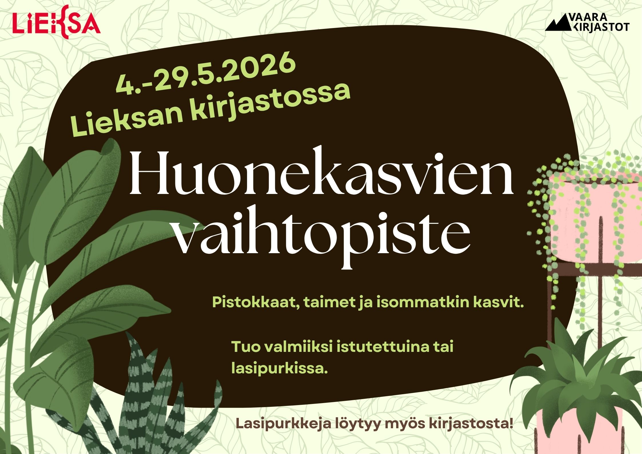 Huonekasvien vaihtopiste Lieksan kirjastossa 4.-29.5.2026 – myös omatoimiaikana!