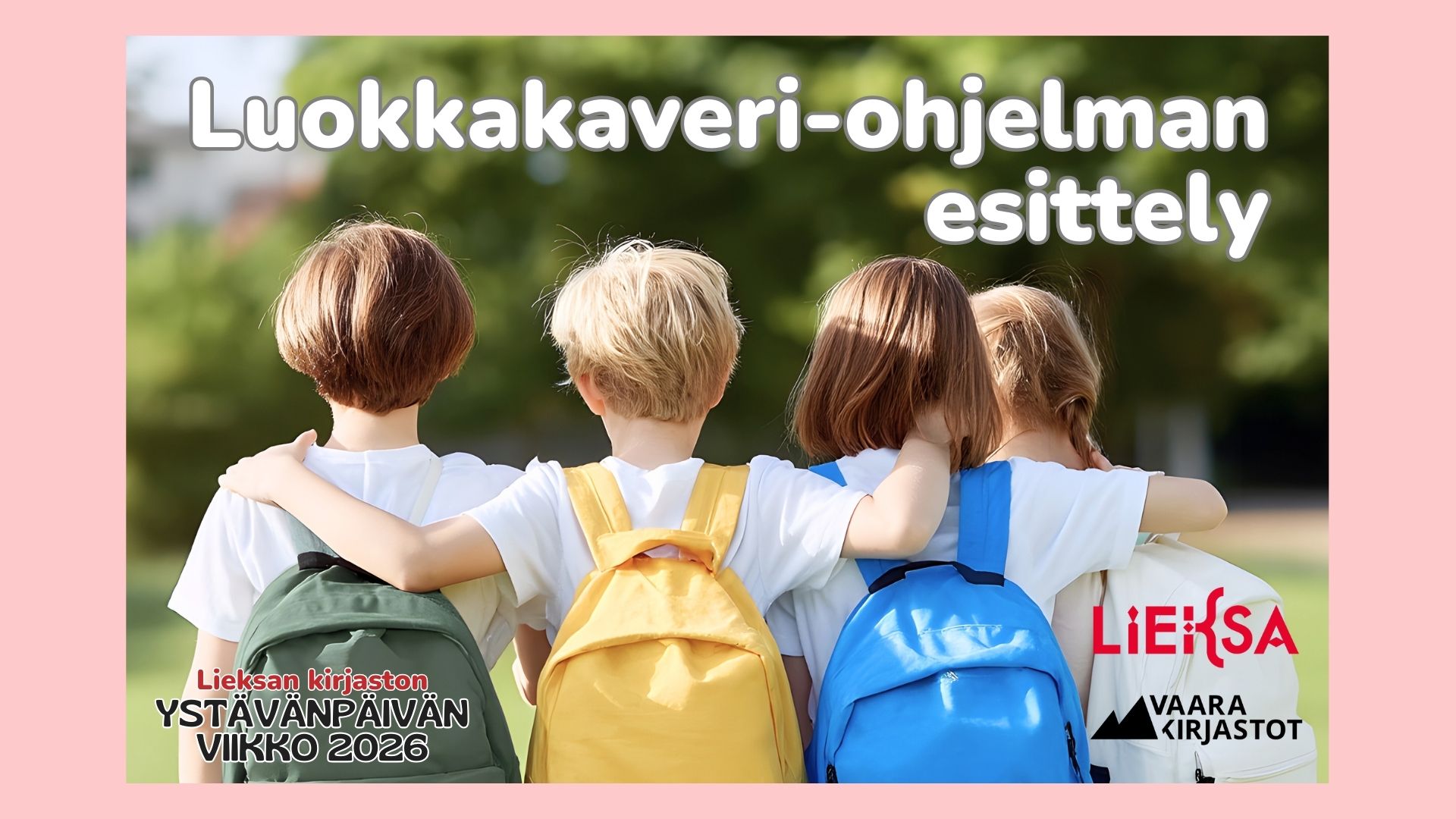 Torstaina 12.2.2026 kello 15 alkaen järjestetään Lieksan kirjastossa valtakunnallisestikin huomiota saaneen Luokkakaveri-ohjelman esittelytilaisuus. Puhumassa ovat ohjelman kehittänyt kasvatustieteen tohtori Kyllikki Kerola, sekä luokkansa kanssa ohjelmaan osallistunut luokanopettaja Heli Kilpeläinen.