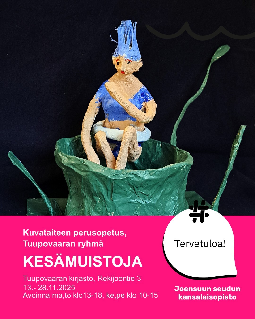 Kuvataiteen perusopetuksen Tuupovaaran ryhmän näyttely Kesämuistoja esillä Tuupovaaran kirjastossa 13.-28.11.2025.