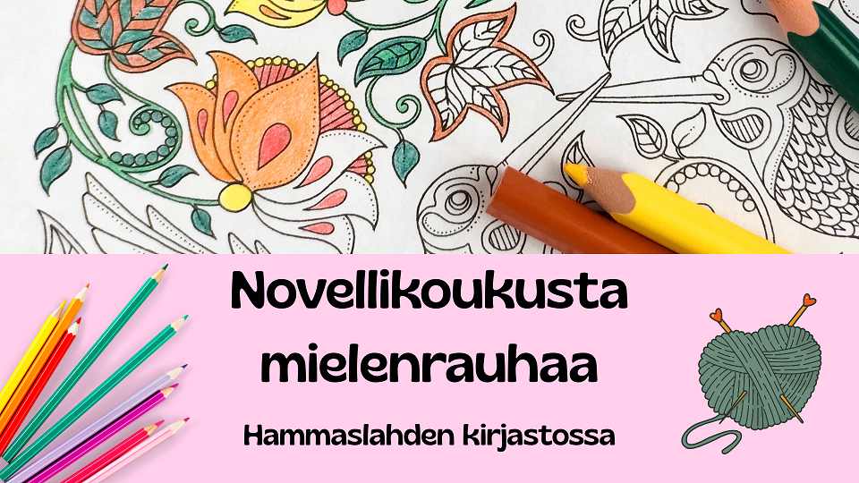 Tervetuloa Hammaslahden kirjaston Novellikoukusta mielenrauhaa -tapahtumaan keskiviikkona 27.5.2026 klo 17–18. Tapahtumassa yhdistyvät tarinoiden taika ja käsillä tekemisen rauhoittava rytmi.