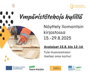 Ympäristötekoja kylillä-näyttely Ilomantsin kirjastossa 15.-29.8.2025.